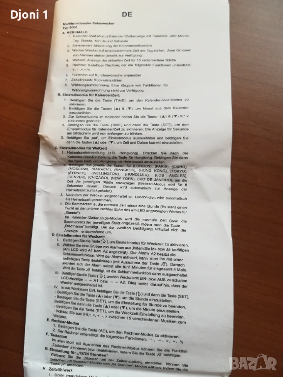 - други функции описани в упътване към него.