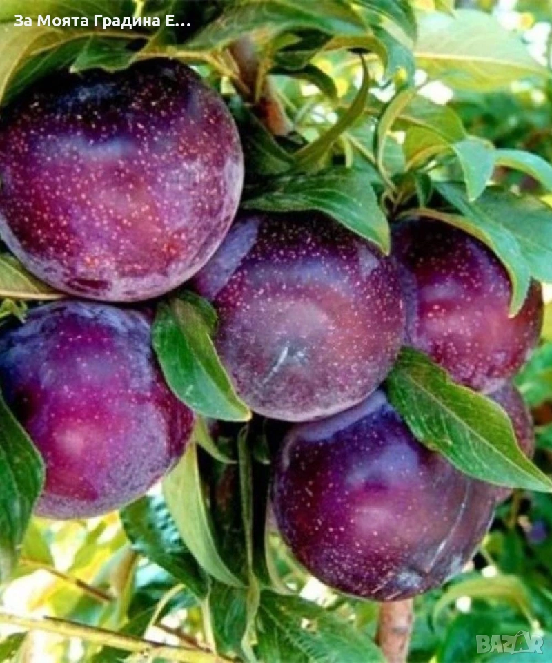 Слива сорт анджелино едра Слива – Анджелино Най едрия сорт сливи Цена 15,49 € Размер 80-100см Анджелино е Американски сорт, много едра слива, с малка, отделяща се костилка. Големината на плодовете достига до 100-120 гр. Ранно встъпва в плододаване, на втора година. Притежава редовна и добра родовитост. Самофертилен сорт и много добър сорт-опрашител, за сортовете които цъфтят заедно с него. Добри опрашители за сорта са Блек Даймънд и Санта Роса. Кожицата на плодовете е тъмно виолетово оцветена до синя. Дървото притежава умерен растеж. Придава бърза и редовна родовитост на дръвчетата, Зрее 10-20 септември Много от растенията променят вида си през периодите на своята вегетация, но тук в сайта със снимки се представят в най-атрактивния им вид. Повечето снимки в сайта ни покзват как ще изглеждат растенията след определен период и положени необходимите грижи. Моля разгледайте и другите ни растения. Благодарим че избрахте нас😊 Тел. +359877977519