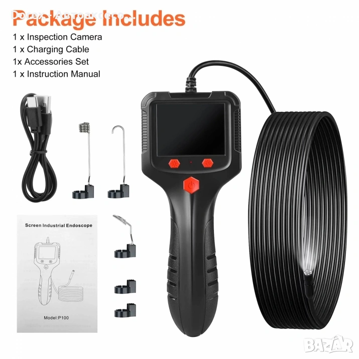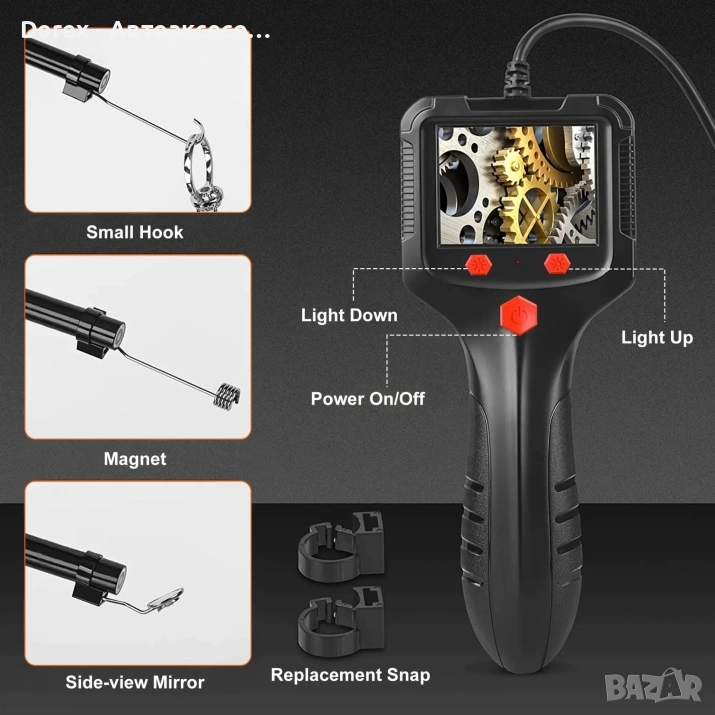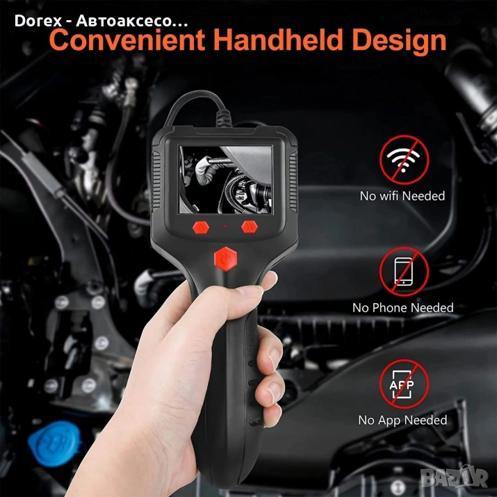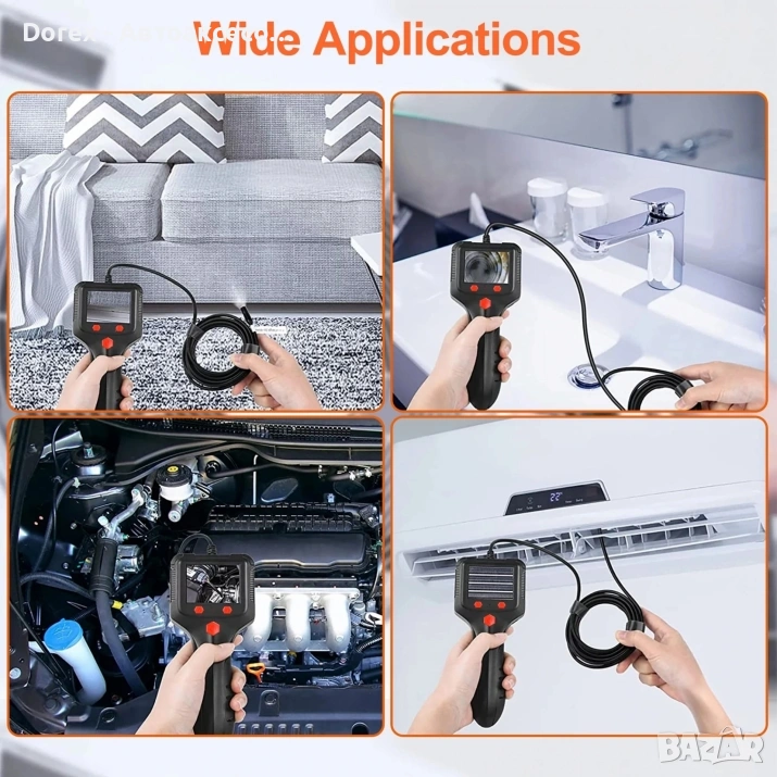 Практична и компактна ендоскопска камера, създадена за инспекция на трудно достъпни места като канали, тръби, двигатели, кухини, вентилационни системи и автомобилни компоненти.