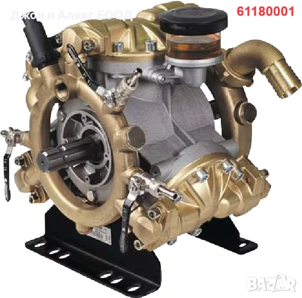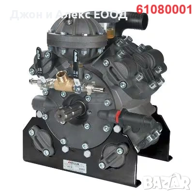 61180001 – Високонапорна бутална мембранна помпа IDS 1401 MM: Марка Comet, Част №61180001, Ед. измерване Each, Височина 396 mm, Ширина 401 mm, Дължина 333 mm, Мощност 16,6 HP / 12,2 kW, Работно налягане макс. 50 BAR, Поток макс. 135 l/min, Въртене макс. 550 r/min, Материал на мембраните NBR, Ø Вход 40 mm, Ø Изход G 3/4 Inch, Вал 2x 1 3/8 Inch, Тип вал 1 3/8" (6) + 1 3/8" (6), Тегло 45 kg, Без защитен капак.