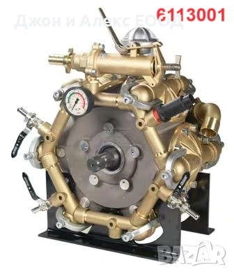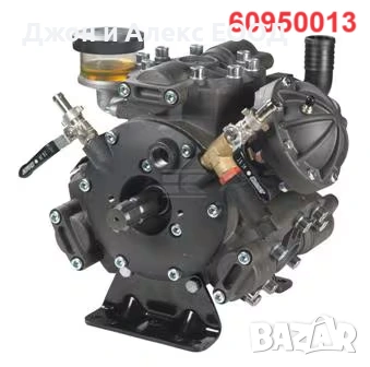60950013 – Високонапорна бутална мембранна помпа APS 121 MM: Марка Comet, Част №60950013, Ед. измерване Each, Височина 357 mm, Ширина 387 mm, Дължина 362 mm, Мощност 14,55 HP / 10,7 kW, Работно налягане макс. 50 BAR, Поток макс. 115 l/min, Въртене макс. 550 r/min, Материал на мембраните NBR, Ø Вход 40 mm, Ø Изход G 3/4 Inch / 10 mm, Брой мембрани 3, Вал 2x 1 3/8 Inch, Тип вал 1 3/8" (6) + 1 3/8" (6), Тегло 38 kg, Без защитен капак, Работен диапазон 0–5 MPa.