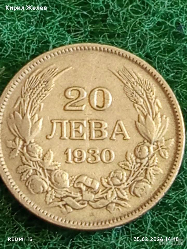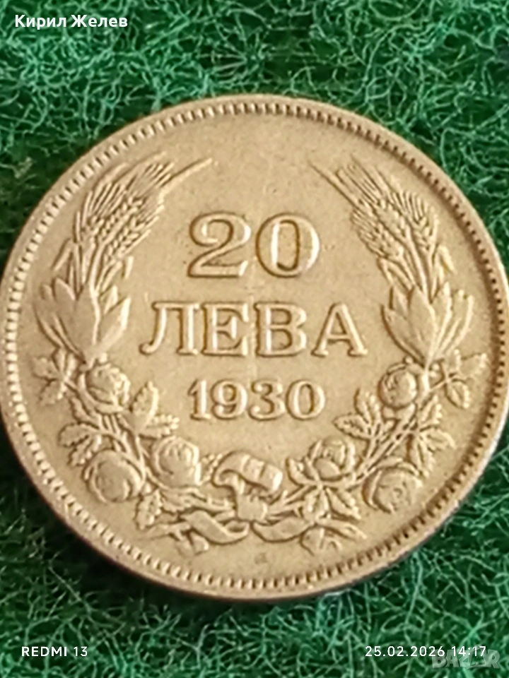 Сребърна монета 20 лева 1930г. Царство България Цар Борис трети за КОЛЕКЦИЯ 34843 → Обява 53618415