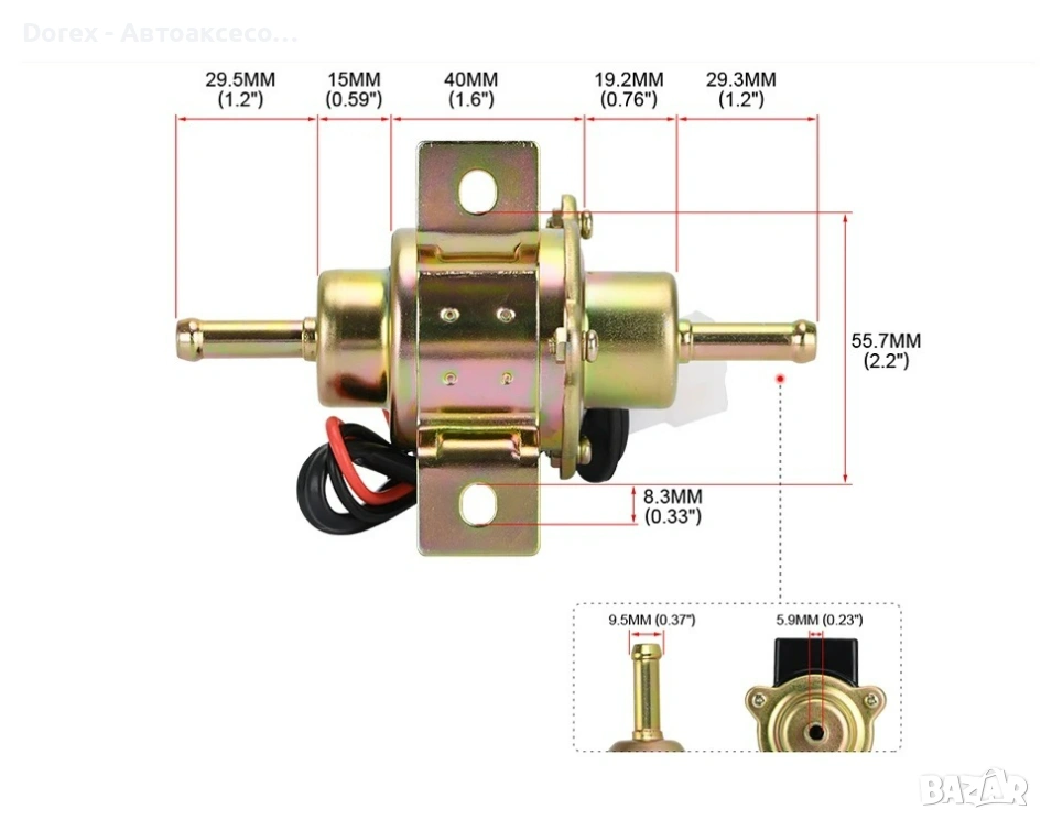 Тип: електрическа горивна помпа (inline / външен монтаж)