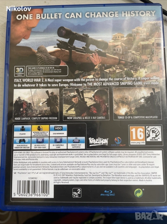 С развиващо се действие след събитията от своя предшественик, Sniper Elite 4 е стелт шутър с перспектива от трето лице, който продължава тематичната поредицата игри за наследството от Втората световна игра, като пренася играчите в красивата обстановка на италианския полуостров - от слънчевите средиземноморски крайбрежни градове до колосалните нацистки мега структури, гъсти гори и прелестни планински манастири, вдъхновени от Монте Касино.