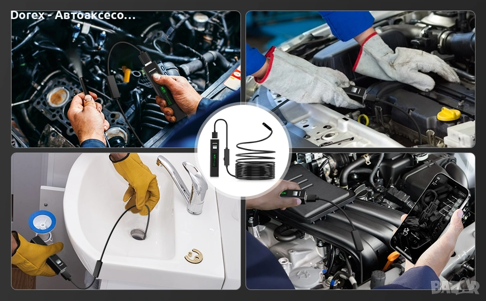 Безжичният ендоскоп Acemall е предназначен за лесен достъп до трудни и тъмни места като тръби, двигатели, изпускателни системи, тоалетни, HVAC системи, строителни и промишлени обекти.