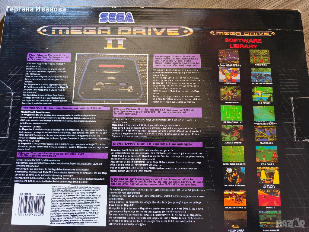 Конзолата има уникална историческа стойност за българския пазар – тя е от официалния внос в България през 90-те години, като по кутията все още личат оригиналните стикери на вносителя с текст: „С вградени игри“ и „Гарантирано качество от фирма вносител“.