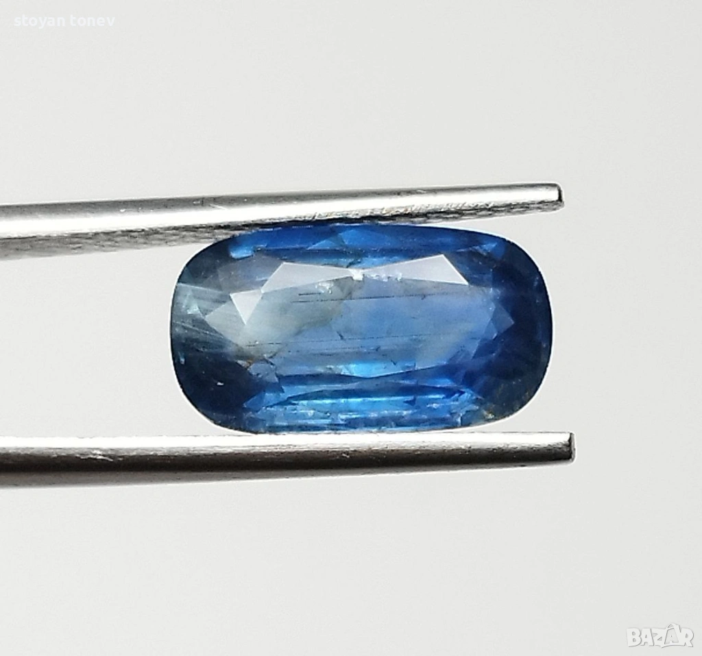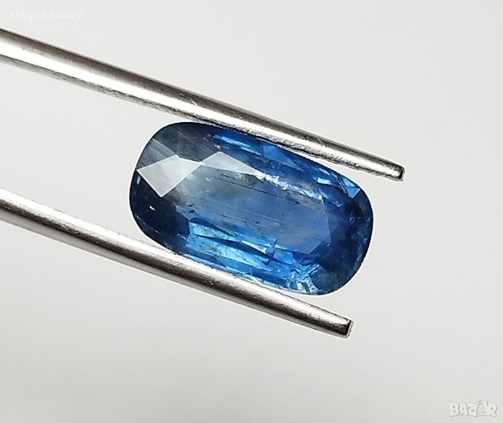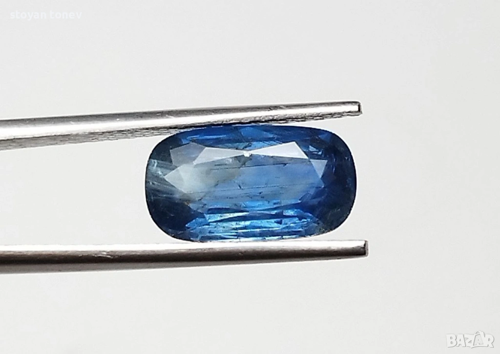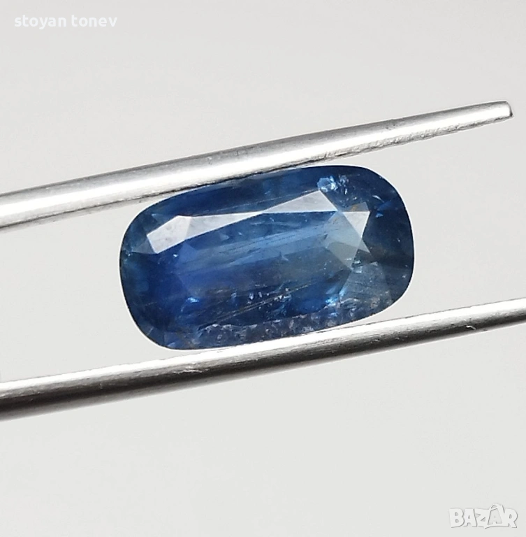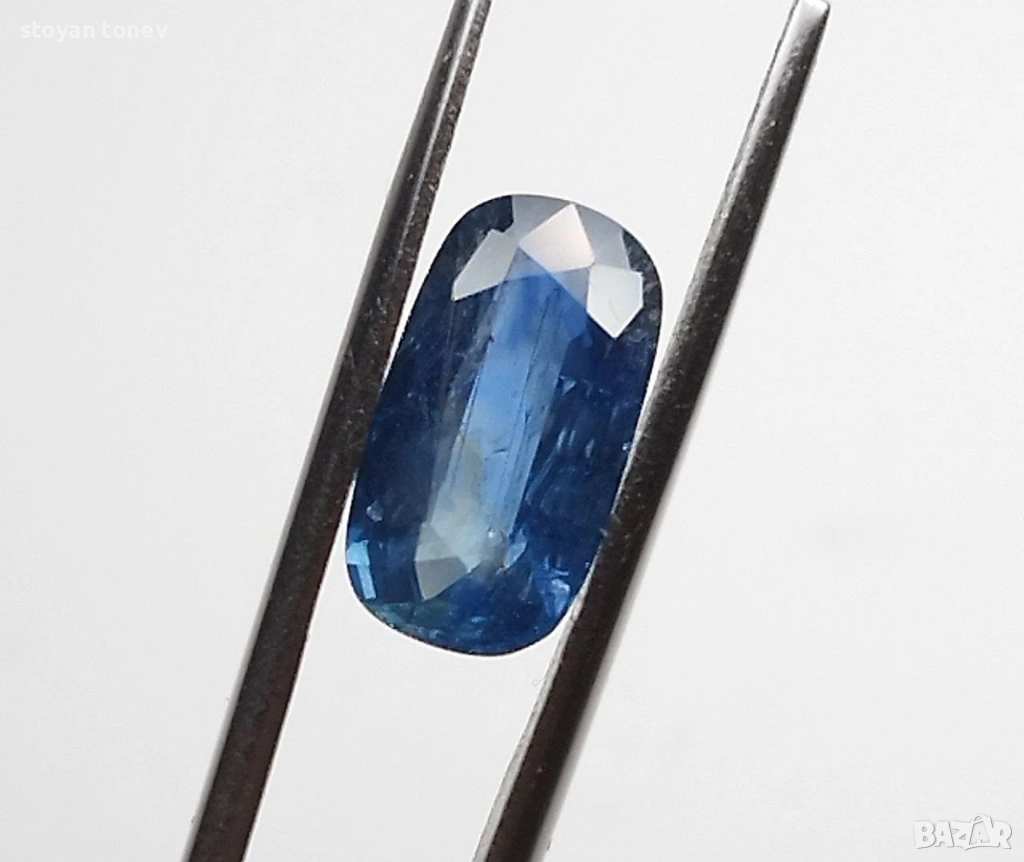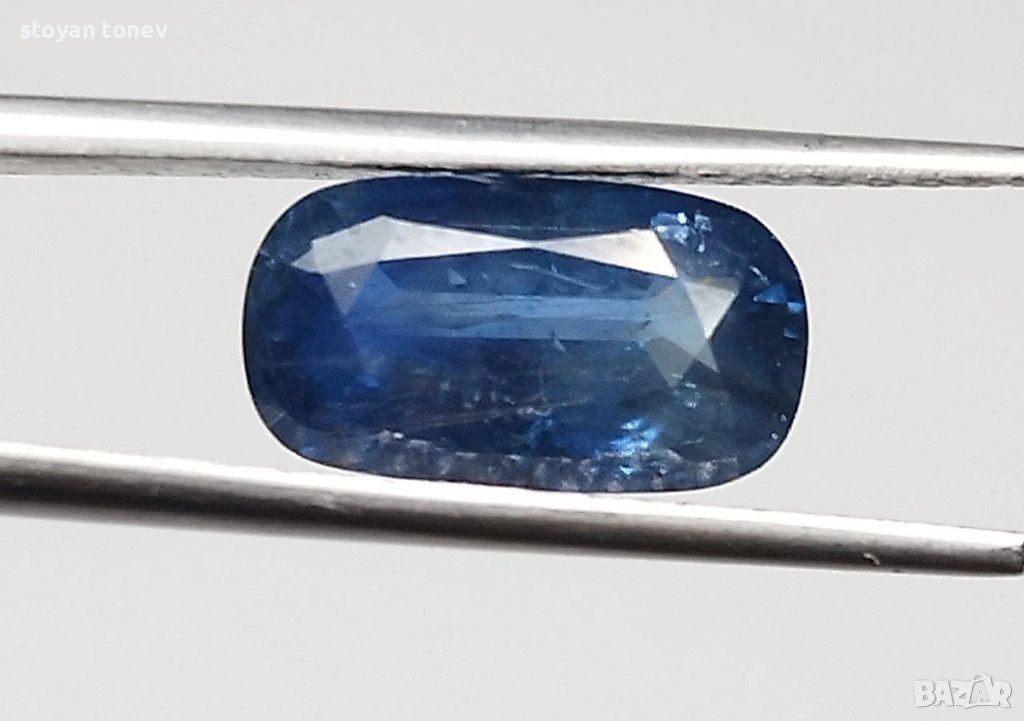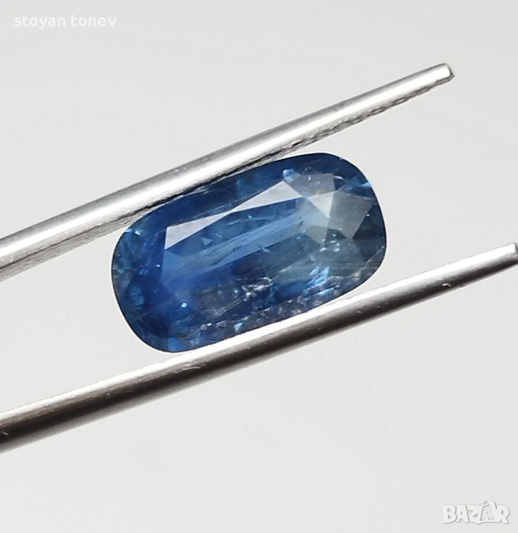 Естествен 2.04кт НЕНАГРЯВАН син сапфир от Шри Ланка (Ceylon) – чист, ярък средно-син цвят с фантастичен блясък. SI1 чистота + мини точка (chip) на ръба, почти не се вижда. Форма възглавничка с размери: 10.02 x 5.50 x 3.51 mm.