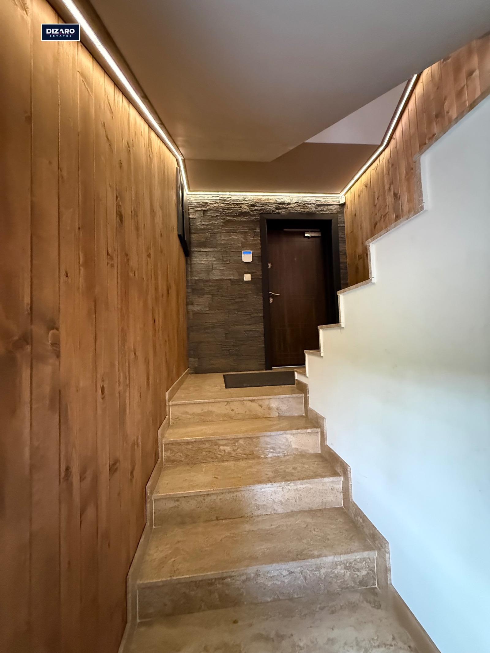 Къщата е обзаведена с дъбов паркет, естествен камък травертин, LED осветление и централна вентилационна система. Отоплението е чрез камина и климатици.