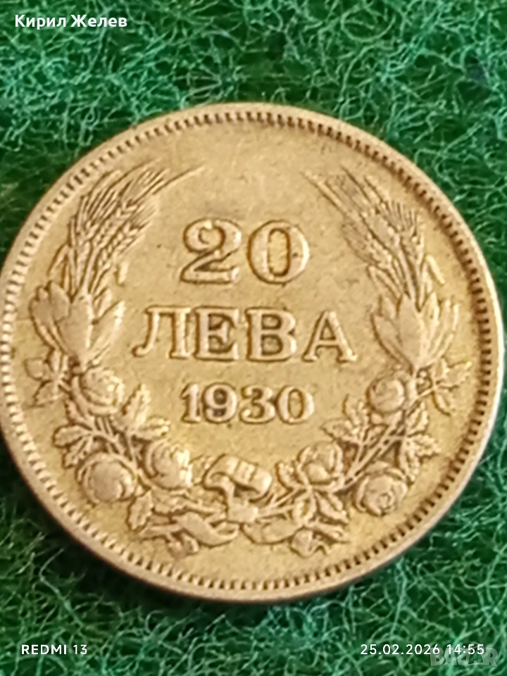 Сребърна монета 20 лева 1930г. Царство България Цар Борис трети за КОЛЕКЦИЯ 38066 → Обява 53619007