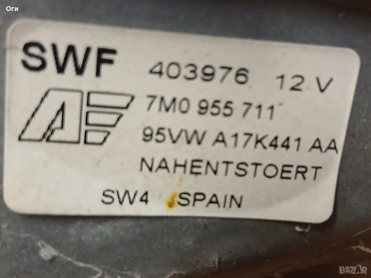 Моторче задна чистачка за Шаран,Алхамбра и Галакси 95VW A17K441 AA / 7M0 955 711, снимка 1 - Части - 53619060 Моторче задна чистачка за Шаран,Алхамбра и Галакси 95VW A17K441 AA / 7M0 955 711, снимка 2 - Части - 53619060 Моторче задна чистачка за Шаран,Алхамбра и Галакси 95VW A17K441 AA / 7M0 955 711, снимка 3 - Части - 53619060 Моторче задна чистачка за Шаран,Алхамбра и Галакси 95VW A17K441 AA / 7M0 955 711, снимка 4 - Части - 53619060 1/4
