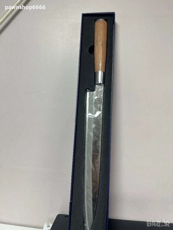 Продавам чисто нов , професионален нож тип Yanagiba от реномираната марка KEEMAKE. Този нож е създаден за истински ценители на японската кухня и майстори на сушито.