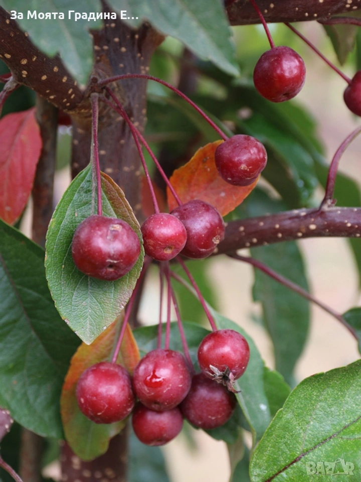 Декоративна червена ябълка Малус Налични 2 вида Crab Apple COCCINELLA® ‘Courtarou’ с червени листа и Crab Apple Evereste с зелени листа Размер 40-60см за 11,45 € Размер 100-120см за 14,49€ 1. Crab Apple COCCINELLA® ‘Courtarou’ – Елегантна красота през всеки сезон! Декоративната ябълка COCCINELLA® ‘Courtarou’ е истинско бижу за всяка градина! С изящните си червено-пурпурни листа, които запазват цвета си през целия сезон, и изобилните розово-червени цветове през пролетта, това дръвче създава неповторим декоративен ефект. През есента се покрива с малки лъскави червени плодчета, които остават дълго време по клоните и радват окото дори през зимата. Компактната му форма (до 3–4 м височина) го прави идеален избор за малки дворове, алеи и декоративни композиции. Непретенциозна, студоустойчива и устойчива на болести, COCCINELLA® ‘Courtarou’ е сорт, който съчетава красота, издръжливост и лекота на поддръжка – перфектният акцент за всяка модерна градина! 2. Crab Apple ‘Evereste’ – Класика в бяло и зелено! Изискана декоративна ябълка с наситено зелени листа и ослепителен пролетен цъфтеж в бяло с лек розов оттенък. През есента се покрива с дребни оранжево-червени плодчета, които украсяват клоните чак до зимата. Компактна, устойчива и лесна за поддръжка, ‘Evereste’ е перфектният избор за малки градини, алеи и декоративни композиции. Красота през всеки сезон – елегантност, която не изисква усилие! Растенията са в контейнери, което позволява засаждането им да се извършва почти целогодишно. Много от растенията променят вида си през периодите на своята вегетация, но тук в сайта със снимки се представят в най-атрактивния им вид. Повечето снимки в сайта ни покзват как ще изглеждат растенията след определен период и положени необходимите грижи.