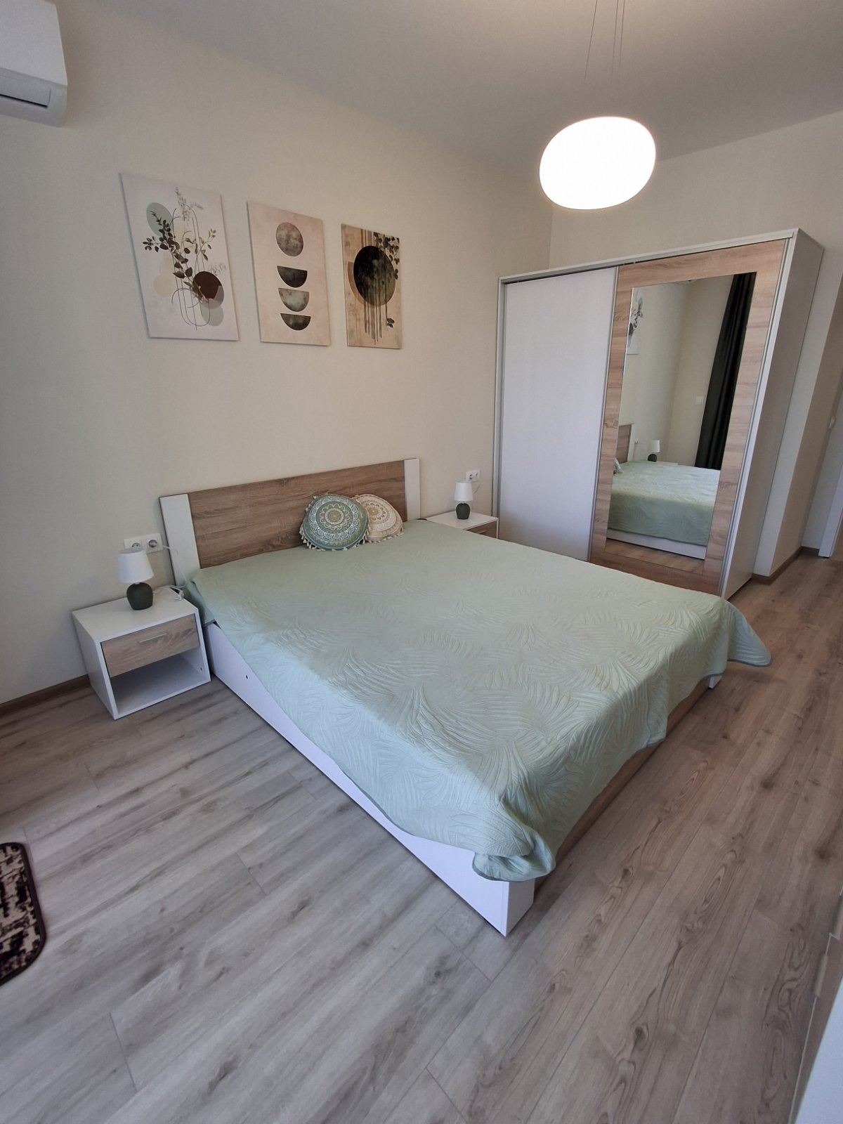 Агенция Абела отдава под наем чисто нов, напълно обзаведен, двустаен апартамент, намиращ се на 4 етаж от 6 в луксозна сграда в кв. Кръстова Вада, непосредствено до бул. Черни Връх. Имотът се състои от дневна с кухненски бокс, спалня, баня с тоалетна, морко помещение и тераса с достъп от дневната и спалнята. Газово отопление и климатици във всяка стая. Напълно оборудван с висок клас електроуреди. Към имота има възможност да се наеме подземен гараж с топла връзка за 120 евро на месец.