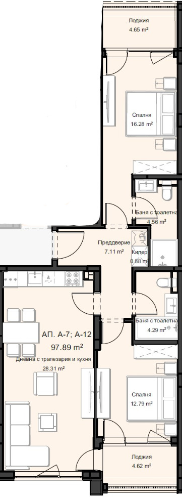 Разпределението е практично и осигурява оптимално използване на площта, с добра осветеност и усещане за простор.
