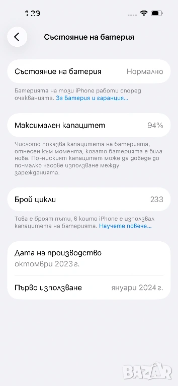 Камера - предна: 12 MP, f/1.9, 23mm (wide), 1/3.6", PDAF: SL 3D, (depth/biometrics sensor); Video 4K@24/25/30/60fps, 1080p@25/30/60/120fps, gyro-EISКамера - задна: Dual: 48 MP, f/1.6, 26mm (wide), 1.0m, dual pixel PDAF, sensor-shift OIS; 12 MP, f/2.4, 13mm, 120? (ultrawide); Video 4K@24/25/30/60fps, 1080p@25/30/60/120/240fps, HDR, Dolby Vision HDR (up to 60fps), Cinematic mode (4K@30fps), stereo sound recСветкавица: Dual-LED dual-tone flash, HDR (photo/panorama)Bluetooth: Bluetooth 5.3