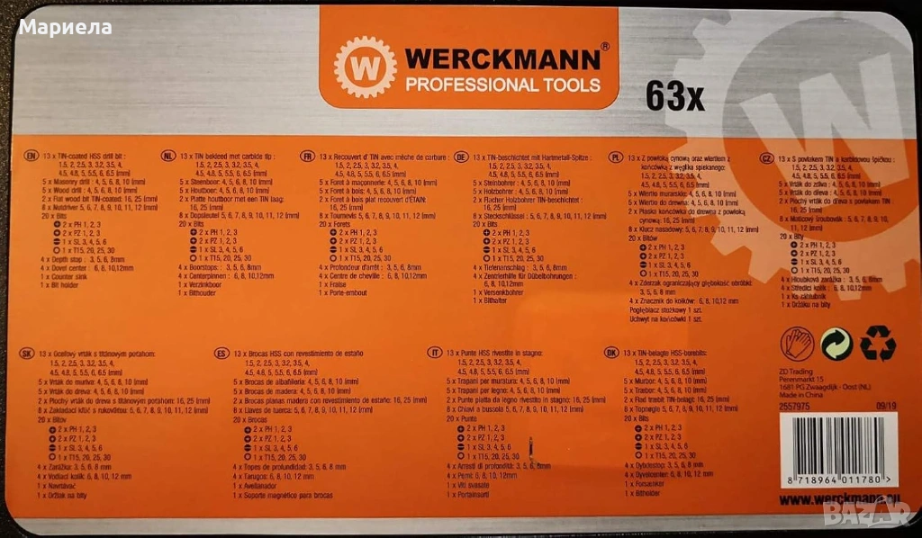 Комплект свредла Werckmann, 63 части