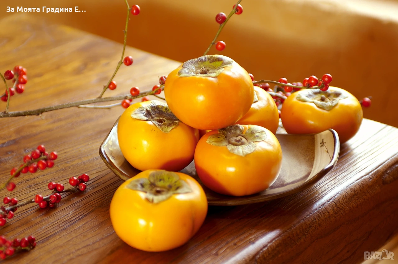 Райска ябълка фую Цена 13,50€ Райска ябълка Фую Райската ябълка Фую (Diospyros kaki Fuyu) или още наричана „Береш-ядеш“ е сорт райска ябълка, която се яде веднага без доузряване след беритбата. Плодовете са хрупкави както нормалните ябълки, но сочни като тези на крушата. Достига на височина до 8 метра с големи и лъскави листа с висока декоративна стойност. Обича слънчеви места и такива на полусянка. Благоприятстват я честото поливане и почвено подхранване. Плодът достига до 250 грама и е без семена. Студоустойчив сорт райска ябълка до – 25 градуса. Дръвчетата от този сорт са силно продуктивни. Един от малкото сортове райски ябълки, предпочитани на световния пазар. Студоустойчива и Самоопрашваща Растенията са в контейнери, което позволява засаждането им да се извършва почти целогодишно. Много от растенията променят вида си през периодите на своята вегетация, но тук в сайта със снимки се представят в най-атрактивния им вид. Повечето снимки в сайта ни покзват как ще изглеждат растенията след определен период и положени необходимите грижи.