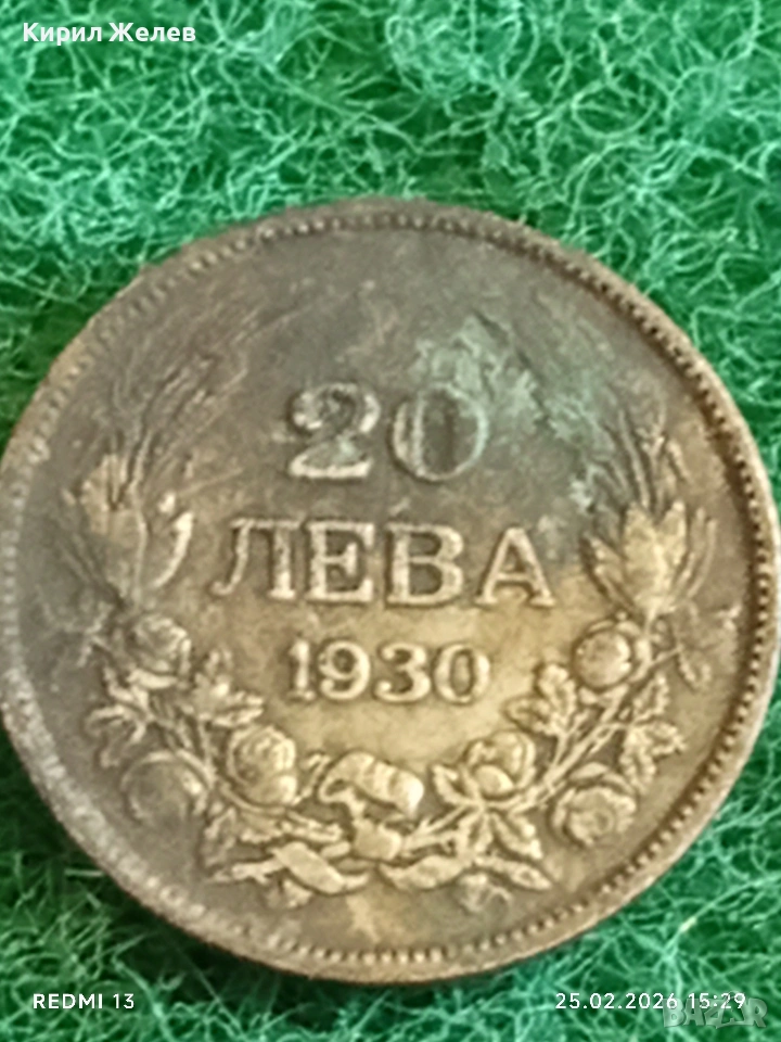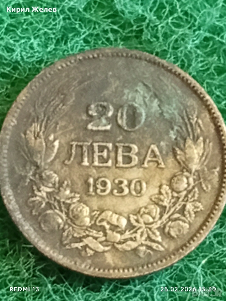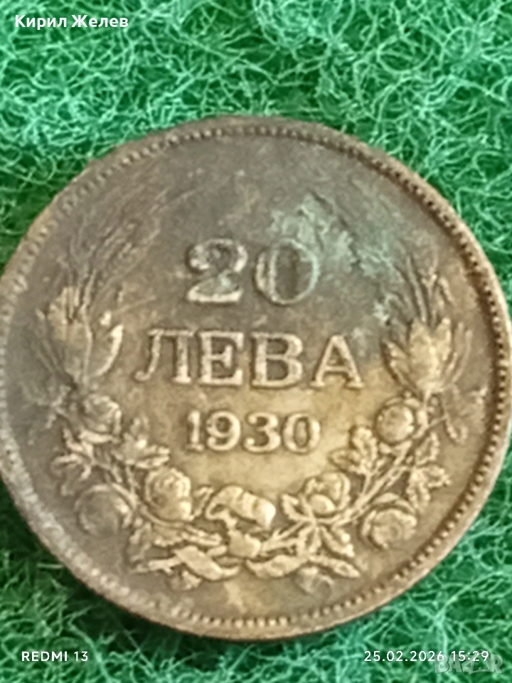 Сребърна монета 20 лева 1930г. Царство България Цар Борис трети за КОЛЕКЦИЯ 39724 → Обява 53619591