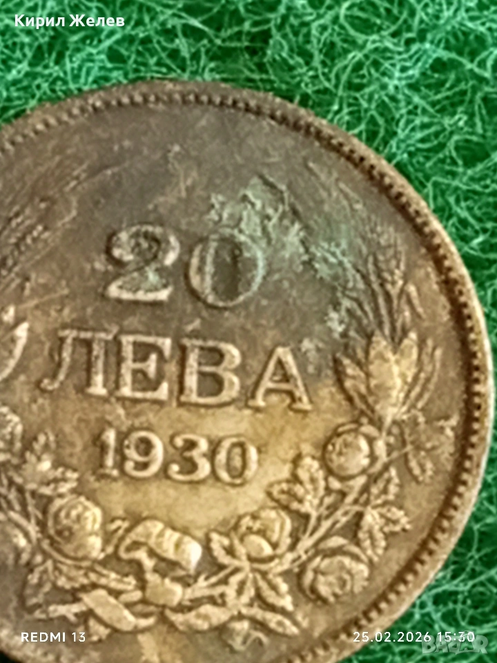 Сребърна монета 20 лева 1930г. Царство България Цар Борис трети за КОЛЕКЦИЯ 39724