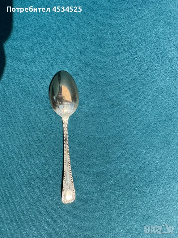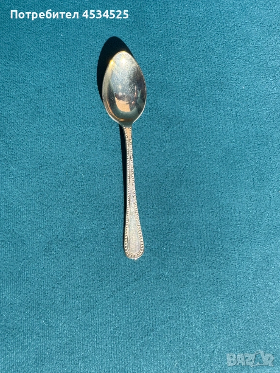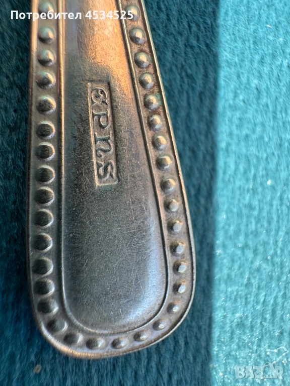Състояние: запазен, с естествена патина от времето, характерна за посребрени и неизползвани дълго прибори (при желание може да бъде почистена).