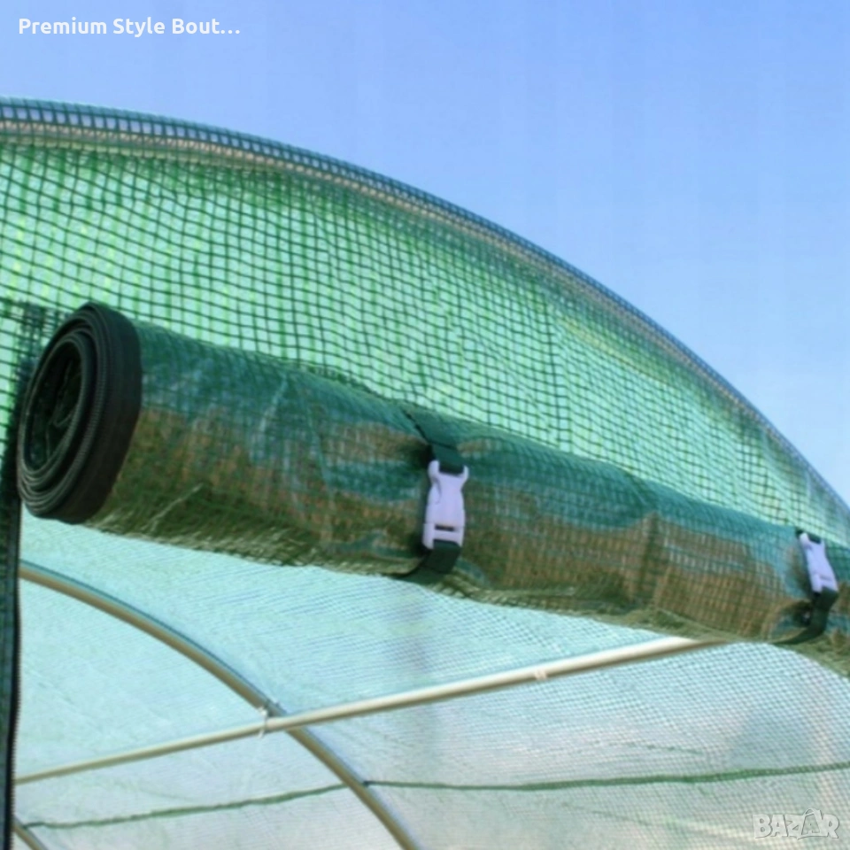 Технически характеристики на Градинска оранжерия 3 сегментова с допълнителна вентилация 3 х 2 х 2м Ето основните спецификации, които ще ви помогнат да прецените продукта: Размери: 3 x 2 x 2 м Сегменти: 3 Фолио: 140 г/м² PE с UV-4, PP мрежа Рамка: поцинкована стомана, тръби Ø19 мм, дебелина 0,6 мм Прозорци: 6 с мрежи против комари Врати: навиващи се с цип, вход 80 x 180 см Вентилация: допълнителна в долната част, навиваща се Земна яка: да Цвят: зелен Включени аксесоари: колчета, крепежни елементи
