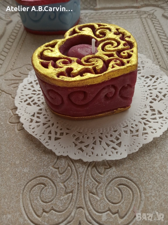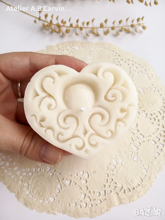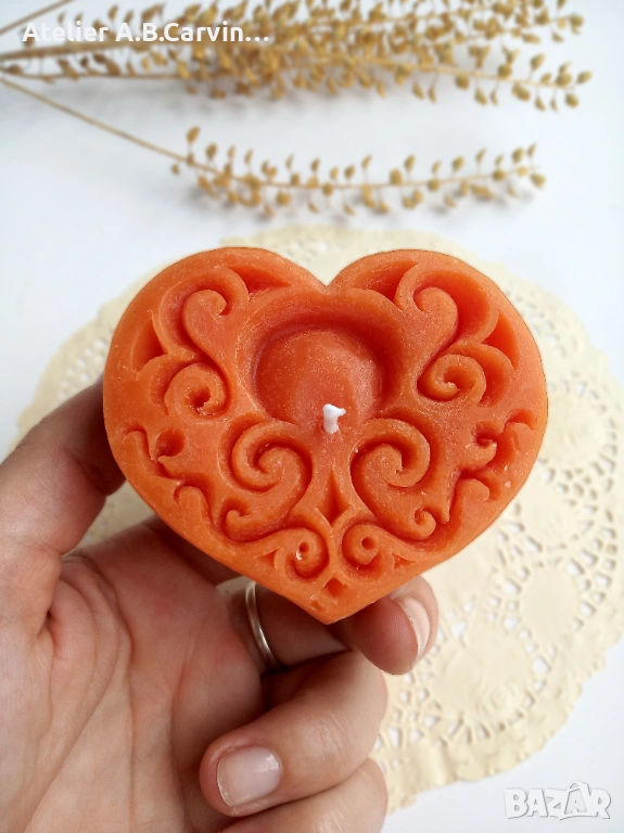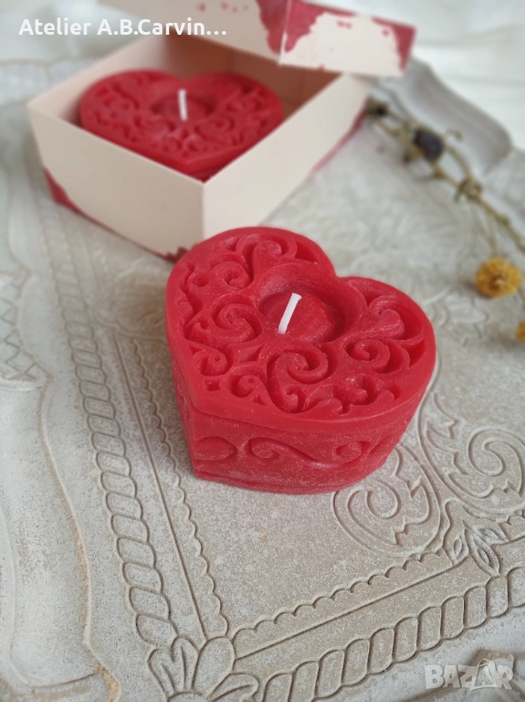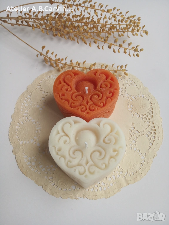 Изразете любовта и вниманието си с нашия изискан комплект от две големи декоративни свещи под формата на сърца. Този модел е част от авторската колекция на