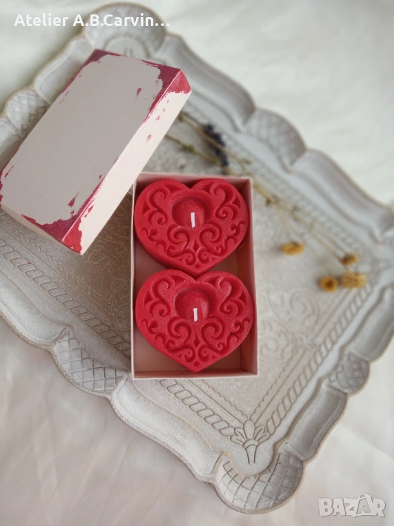 Декоративни свещички две гравирани сърцa в комплект, допълнение към вашата романтика