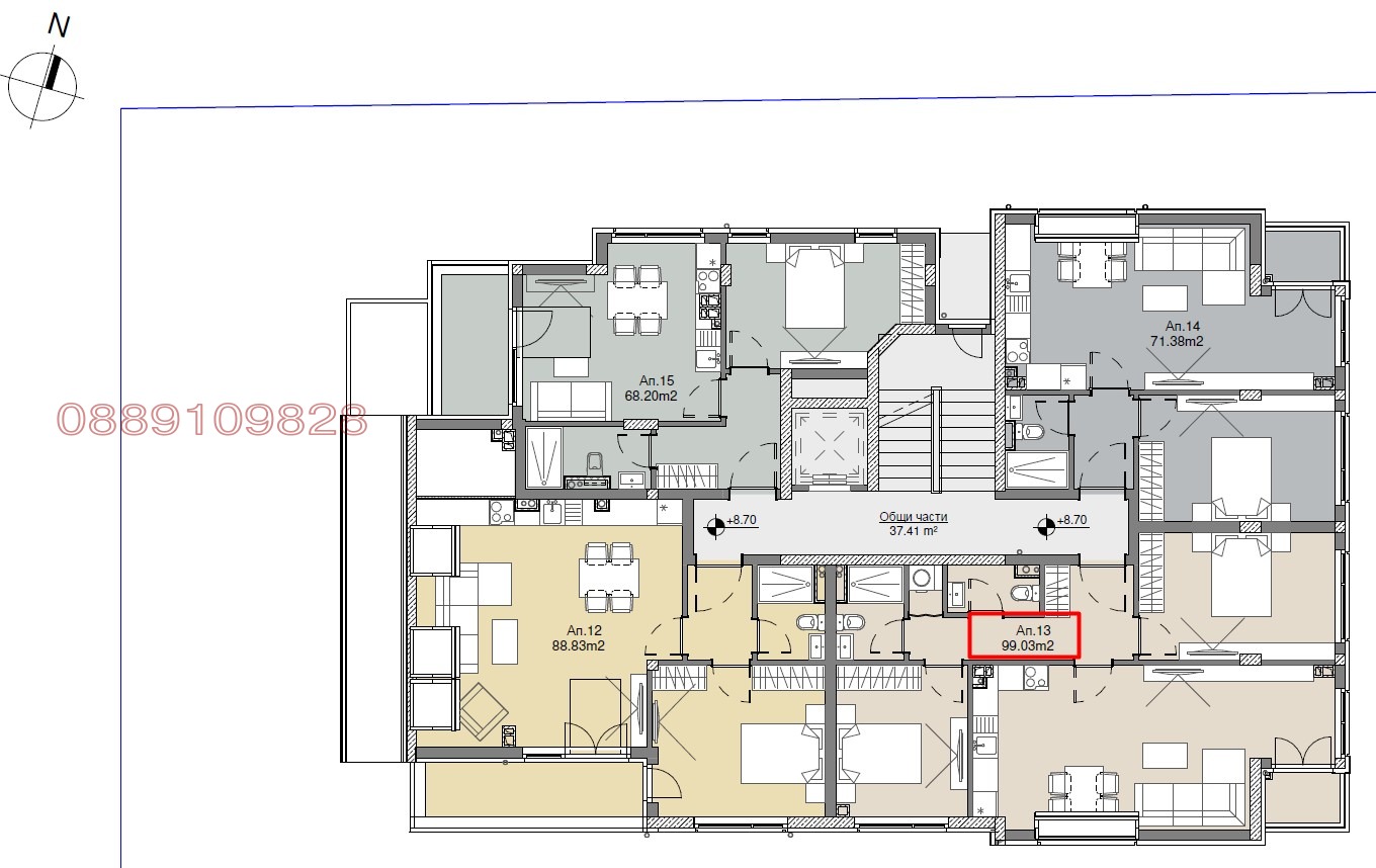 На четвърти етаж - югоизточен, 99,03 кв. м.; 212 900 евро.