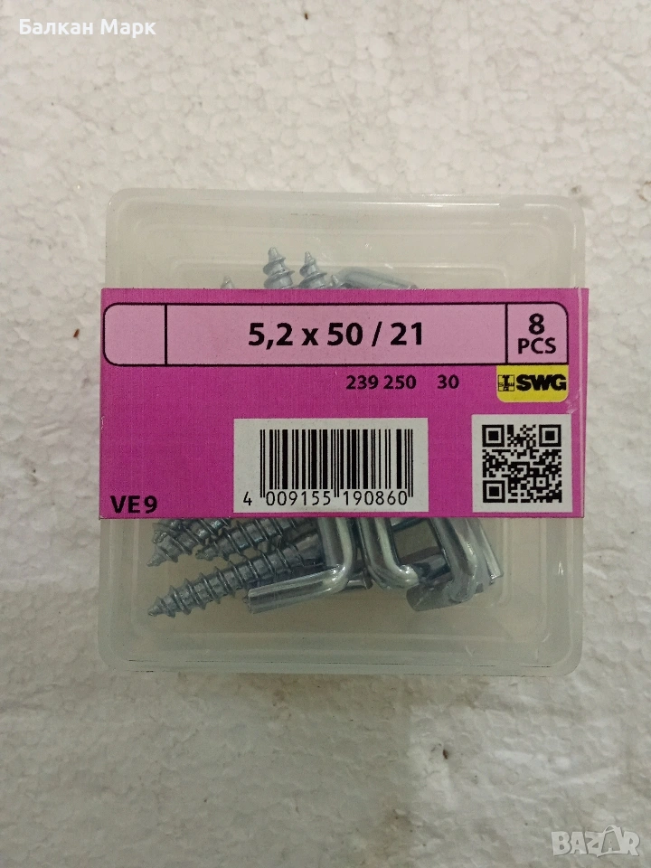 Г-образни куки за монтаж (Винт-кука) –8бр./оп.