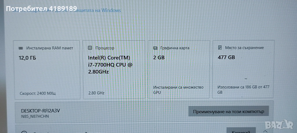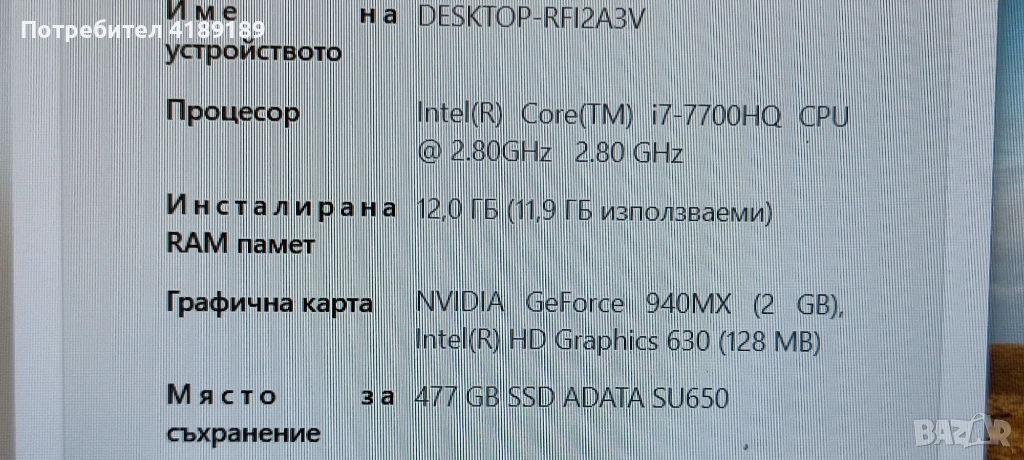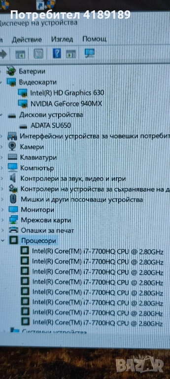 i7 7700hq,GT,940mx ,SSD,512gb,12ram → Обява 53620061