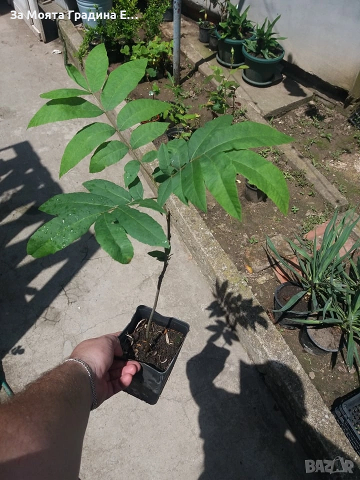Разсад Орех Пекан Размер 30-40см за 16, 99 € Размер 90-110см за 25,99 € Пеканът (Carya olivaeformis) принадлежи към семейство Орехови и е сред добрите дървесни гостоприемници на трюфелната микориза. Известен е още като „цар на орехите“ и „маслен орех“. Плодовете му са изключително вкусни, сладки и високо калорични. Пеканът (Carya olivaeformis) принадлежи към семейство Орехови и е сред добрите дървесни гостоприемници на трюфелната микориза. Известен е още като „цар на орехите“ и „маслен орех“. Плодовете му са изключително вкусни, сладки и високо калорични. Те съдържат 71% мазнини, 15% въглехидрати, 10% протеини, минерални вещества и вода. Богати са на микроелементи калций, фосфор, манган, калий, цинк и на витамини А, В и Р. Плодовете се консумират в прясно състояние или обработени и са ценна суровина за хранителната промишленост. Те се употребяват сушени и печени или смлени, с мед и сладки, сушени плодове и др. От тях се получава висококачествено масло, което има вкус подобно на маслината. Дървесината му не отстъпва по качество от тази на обикновеният орех. Тя е много еластична и затова се използва за изработването на ски. Пеканът има и декоративна стойност. Ценят го заради декоративните красиво перести листа, напомнящи есента, поради което нерядко може да срещнете пекан и в парковете. Дърветата пекан са листопадни, имат мощна коренова система, която прониква дълбоко в почвата и достигат до височина 60 м и около 35 м ширина на короната. Те са изключително родовити и дълголетни. Живеят повече от 500 години и плододават поне до 300 години Много от растенията променят вида си през периодите на своята вегетация, но тук в сайта със снимки се представят в най-атрактивния им вид