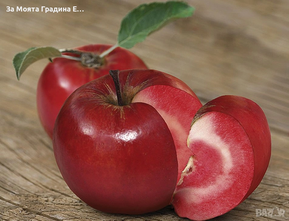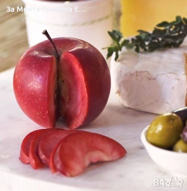 Цена 11,50€ Ябълка #RedLove “Sirena” – “#Червена луна” RedLove “Sirena” – “Червена луна” е изключително красива и вкусна ябълка. Плодовете са средно едри, кожицата е червена, плодовото месо също е обагрено в червено, сладко, сочно, с приятен аромат. Студоустойчивостта е много добра, задоволителна. Цъфтежът е през средата на април месец, с красиви розово-бели цветчета. Сортът е много подходящ за ценители, колекционери. Зрее 20-30 септември Много от растенията променят вида си през периодите на своята вегетация, но тук в сайта със снимки се представят в най-атрактивния им вид. Моля разгледайте и другите ни растения в сайта. Благодарим че избрахте нас 😊 Тел. 0877977519