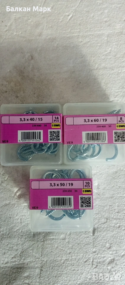 винтови куки SWG 3 размера Внос от Германия