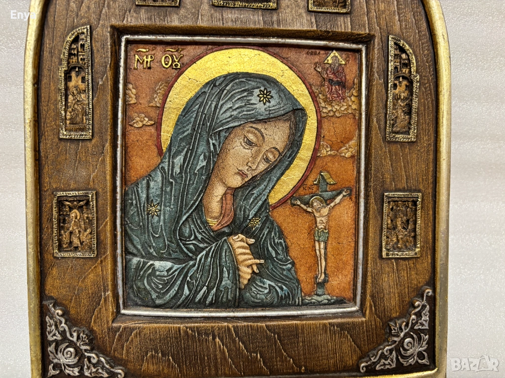 Ръчно рисувана икона на Света Богородица Долороса с миниатюри → Обява 53620506