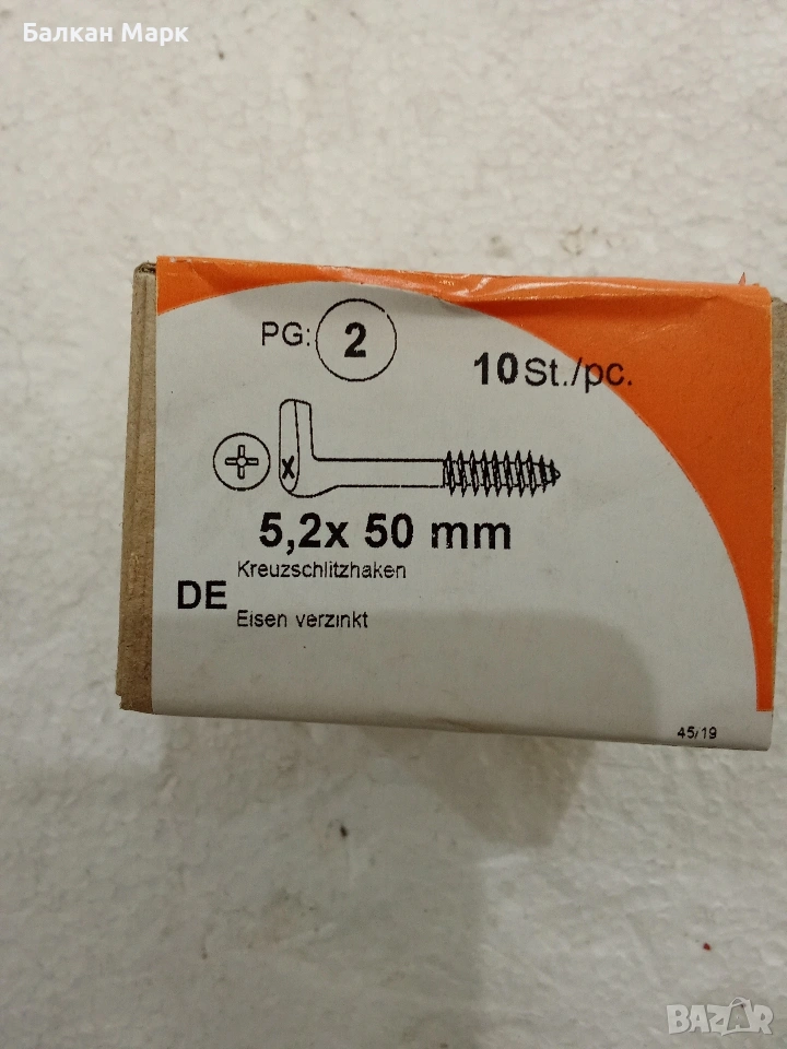 -образни куки с винт (L-образни) – 5,2 x 50 mm 10бр.