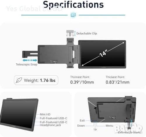 ELECROW CrowView 14" FHD монитор 1920x1080