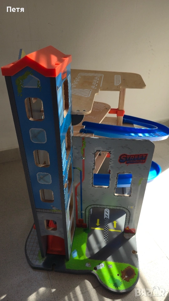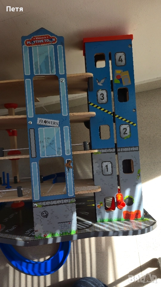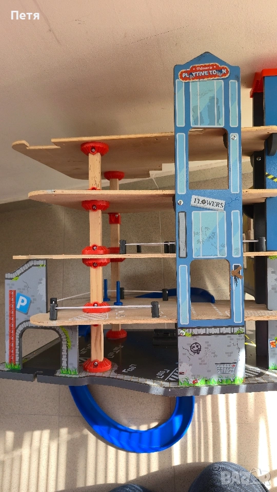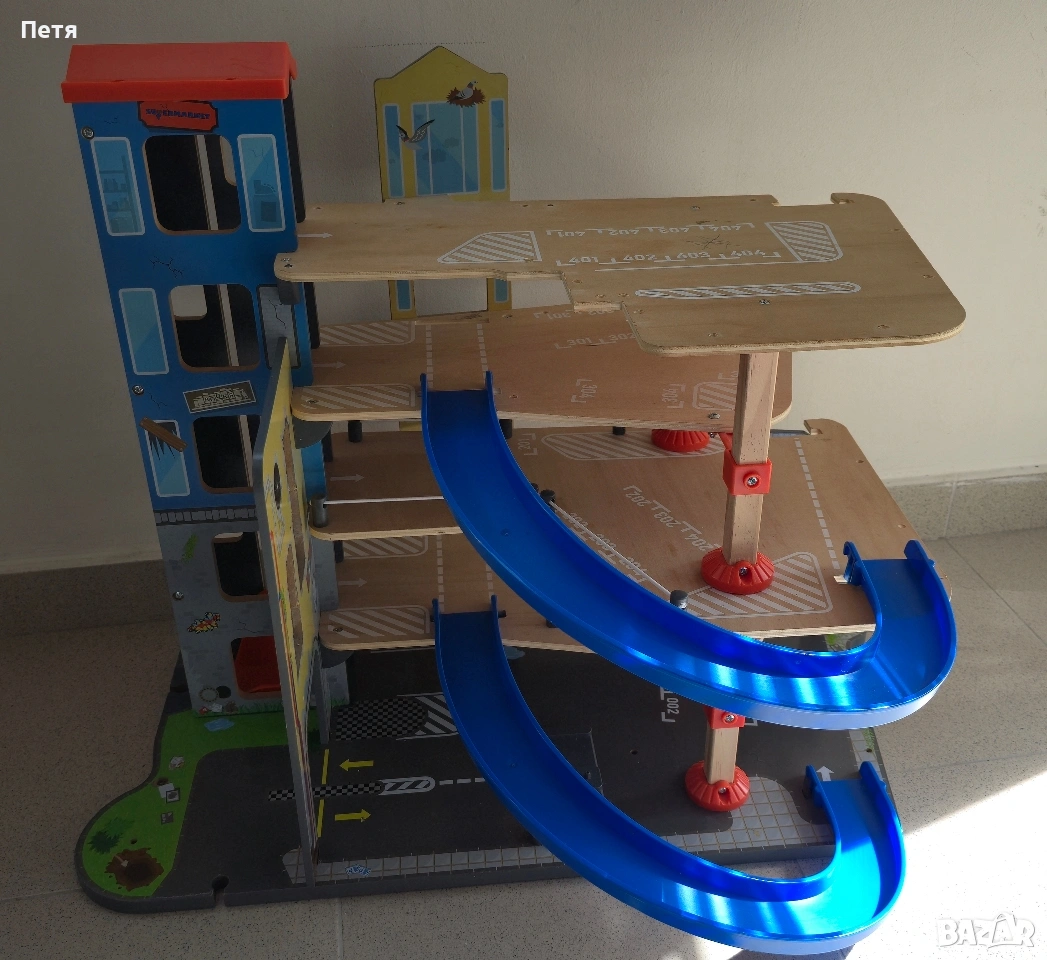 Продавам дървен паркинг с липсващи елементи. Подходящ за резервни части. Може да се използва и за игра, асансьорът е наличен и работи. Продава се както е на снимките, в разглобено състояние за по-лесно съхранение. Цената е съобразена със състоянието. Само лично предаване, защото е много тежко.