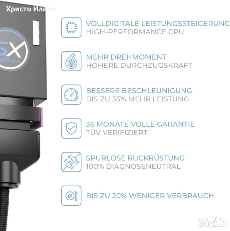Съдържание на кутията: Подобрение на производителността Speed-X - специфичен комплект кабели за вашето превозно средство - инструкции за монтаж - монтажни материали