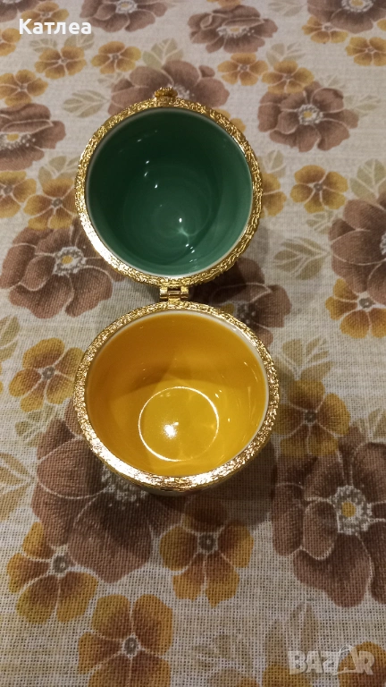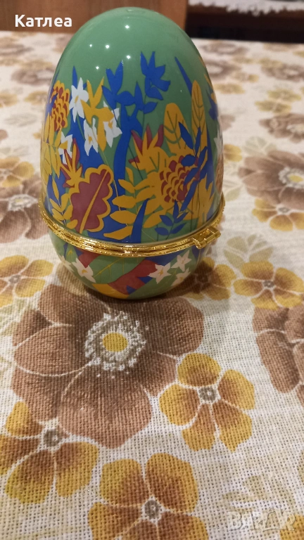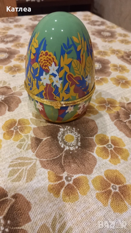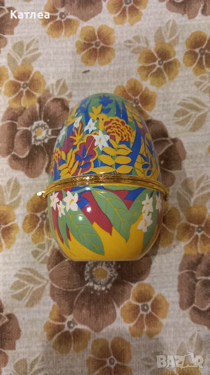 Голямо порцеланово яйце с диаметър 8 см. и височина 11 см. в отлично състояние без забележки. Отваря се и се затваря отлично. Много красиви шарки с цветя.