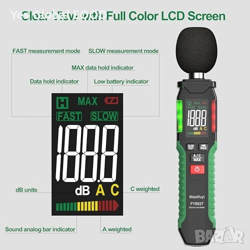 Дигитален шумомер 30–130dB A/C LCD