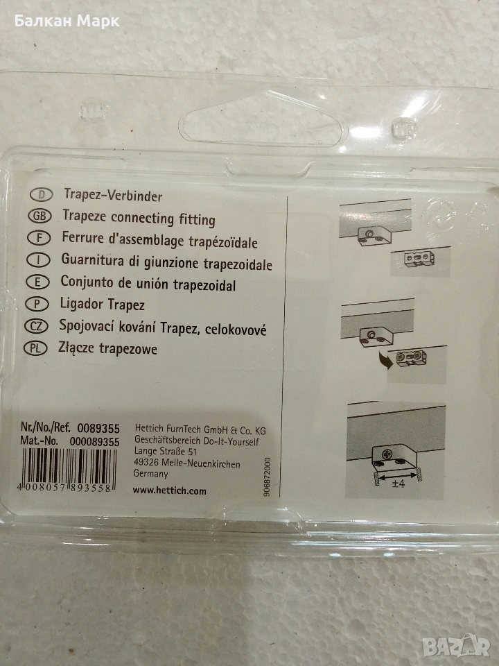 Продавам висококачествени трапецовидни съединители за мебели на водещата немска марка Hettich. Продуктът е част от разнообразна палетирана стока, директен внос от Германия.