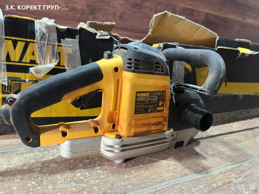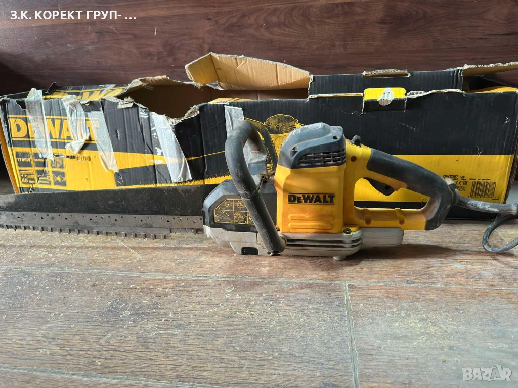 Eлектрически трион тип "Алигатор" DeWALT DWE397-QS е предназначен за рязане на тухли. Има постоянна скорост за оптимални условия на рязане и мощен двигател, който отговаря на всички оперативни изисквания. Две противоположно въртящи се трайни остриета се движат в противоположни посоки, като по този начин се предотвратява движение на материала при рязане. Скоростната кутия и лагерите са защитени срещу проникване на прах, което осигурява дългосрочна употреба. Сплав от магнезий осигурява ниско тегло и здравина. А лесната и бърза смяна на инструмента за рязане намалява времето за престой. Ергономичният дизайн и гумираните дръжки позволяват лесна работа и по-малко умора. Lock ключ за изключване и спирачка за по-голяма безопасност. Идеален за рязане на глинен блок (Poroton).