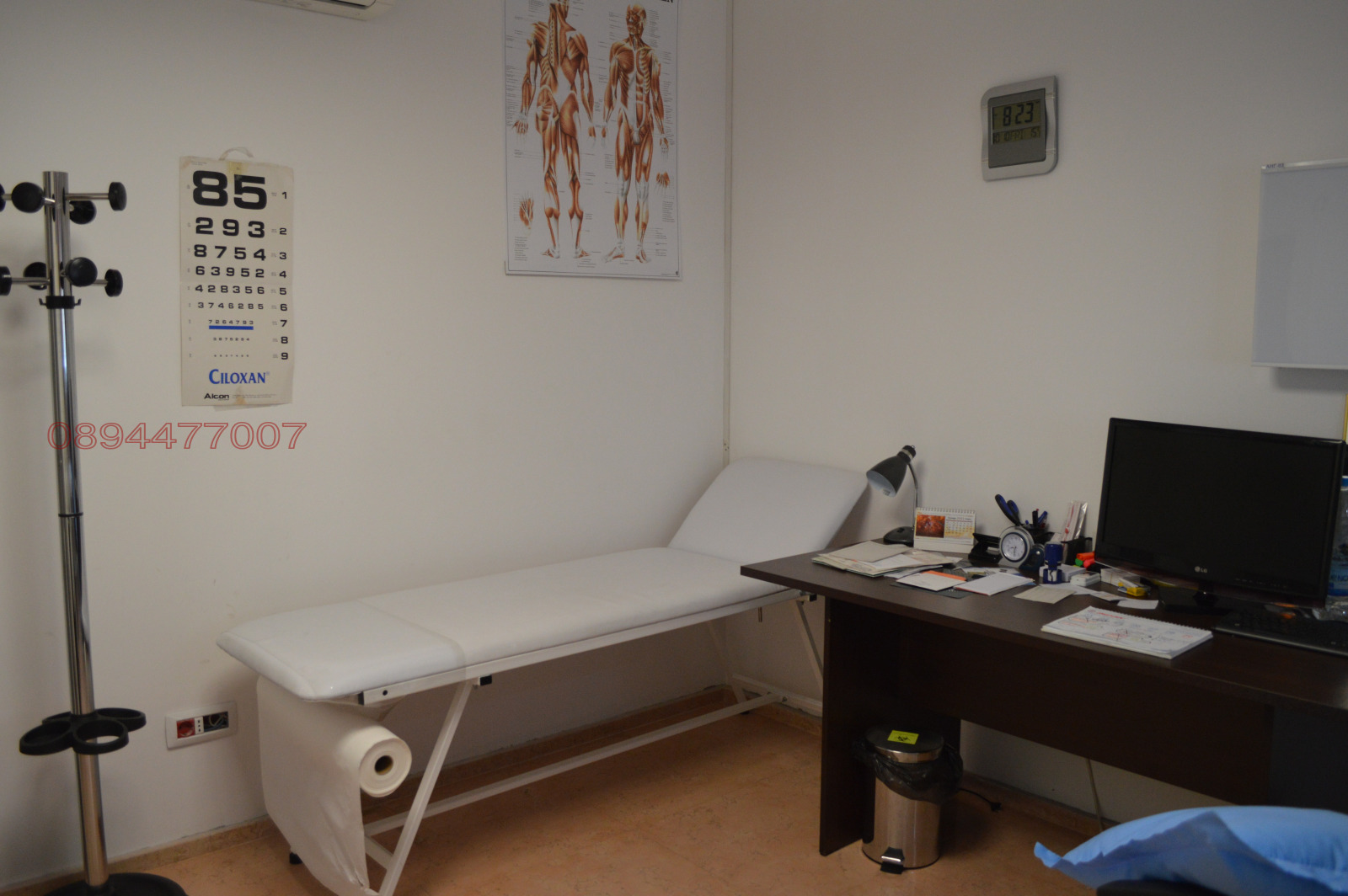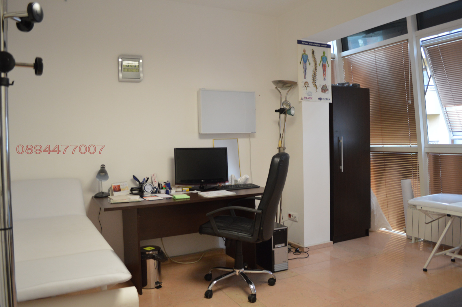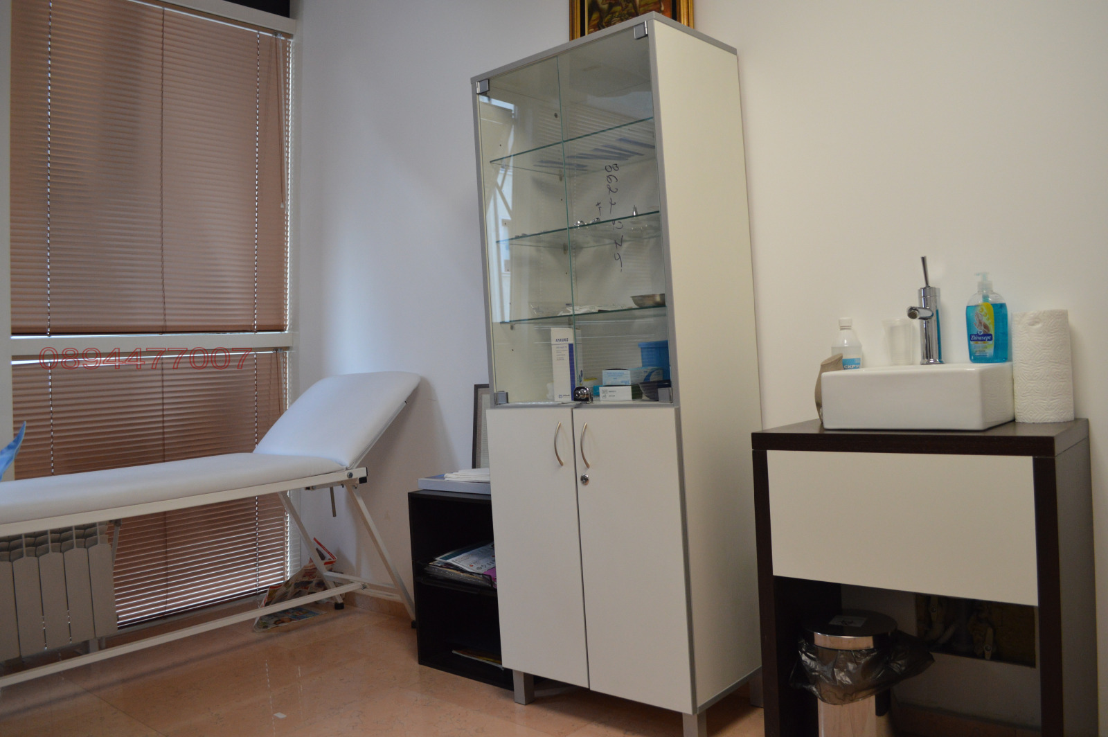 Дава се под наем кабинет в медицински център, находящ се в кв. Лозенец, на ул. Цветна градина 72. Центърът разполага с 4 медицински кабинета по 12 кв.м., една манипулационна, рецепция с чакалня, тоалетна и складче. Кабинетът е оборудван с бюро и стол, медицинска кушетка, мивка с течаща вода, шкаф за лекарствени продукти и малък гардероб. Обектът е с осигурена почистваща фирма и интернет връзка.Общо състояние: луксозно изпълнение, стени -латекс, под- гранитогрес. Центърът разполага с разрешително за извършване на следните медицински дейности по следните специалности: ушно-носно-гърлени болести, нервни болести, кожни и венерически болести, вътрешни болести, кардиология, очни болести и акушерство и гинекология.