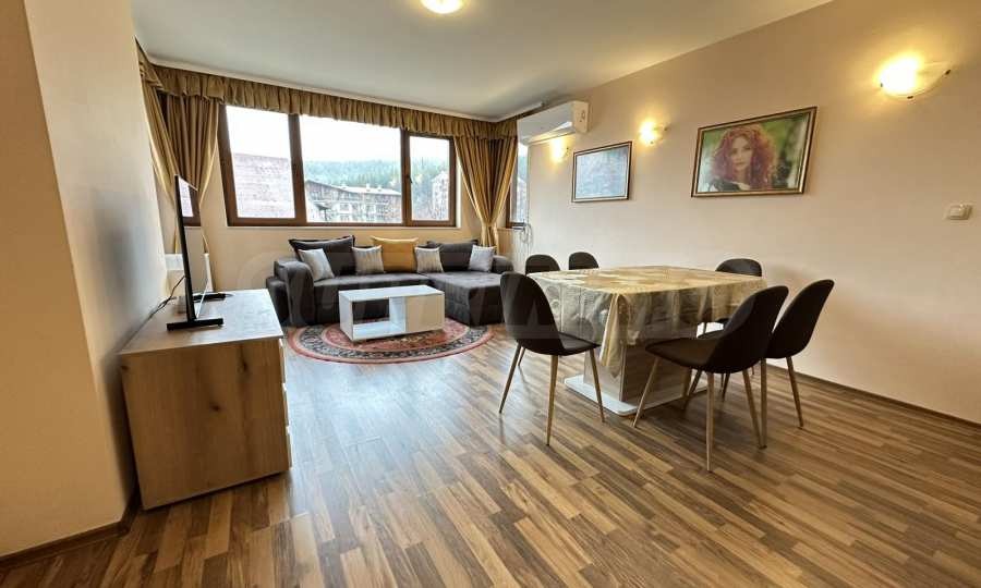 Представяме напълно реновиран и обзаведен двустаен апартамент под наем в жилищна сграда Елит Лодж в Банско.