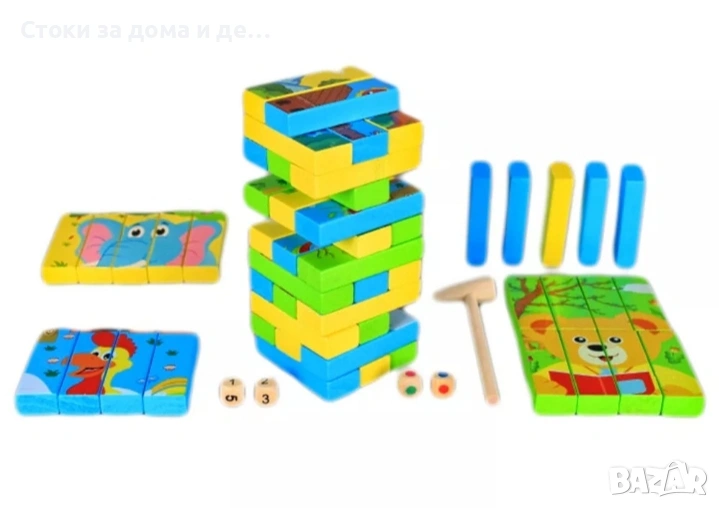 ✨ Дървен мултифункционален пъзел (дженга) → Обява 53621743