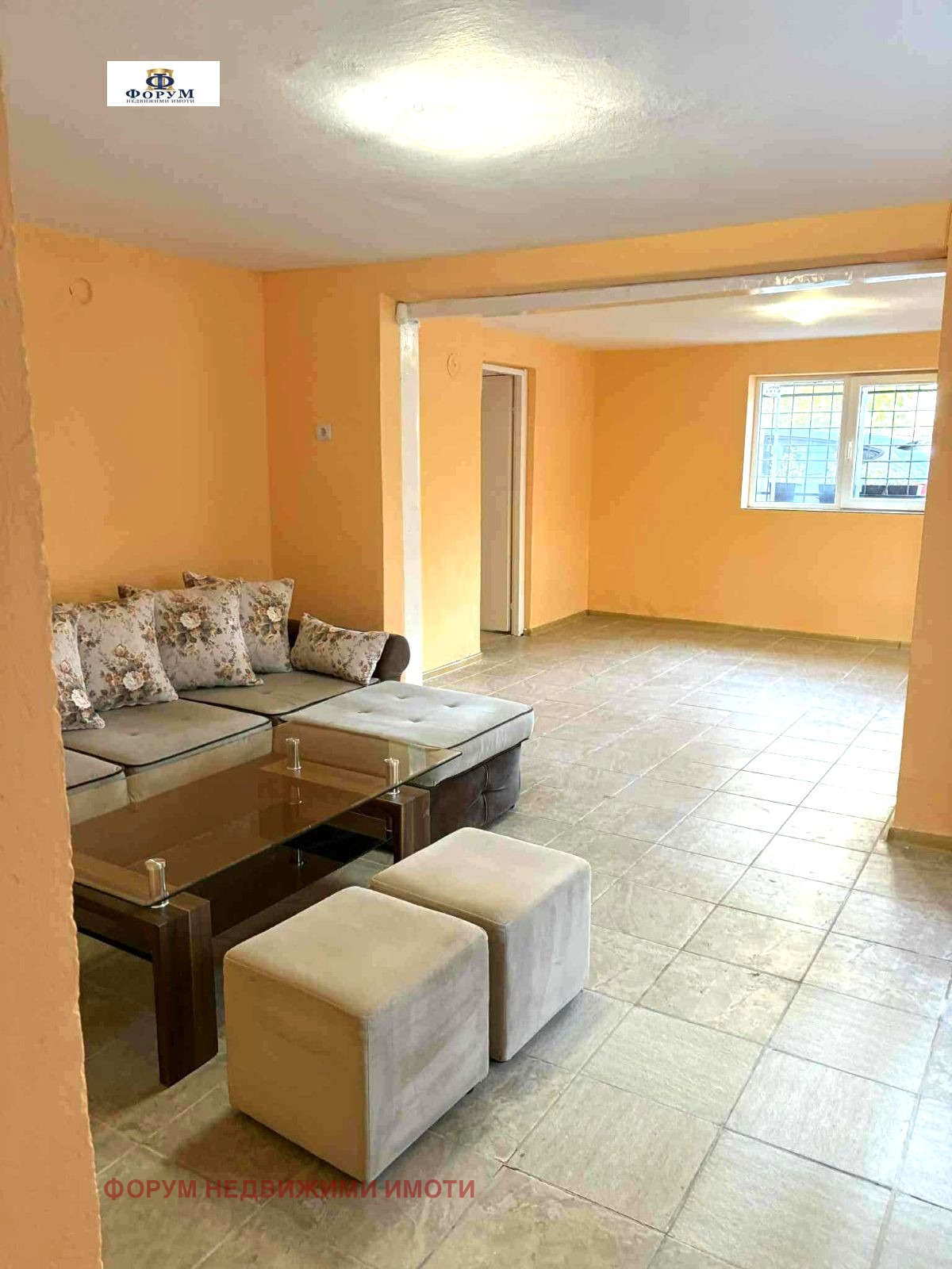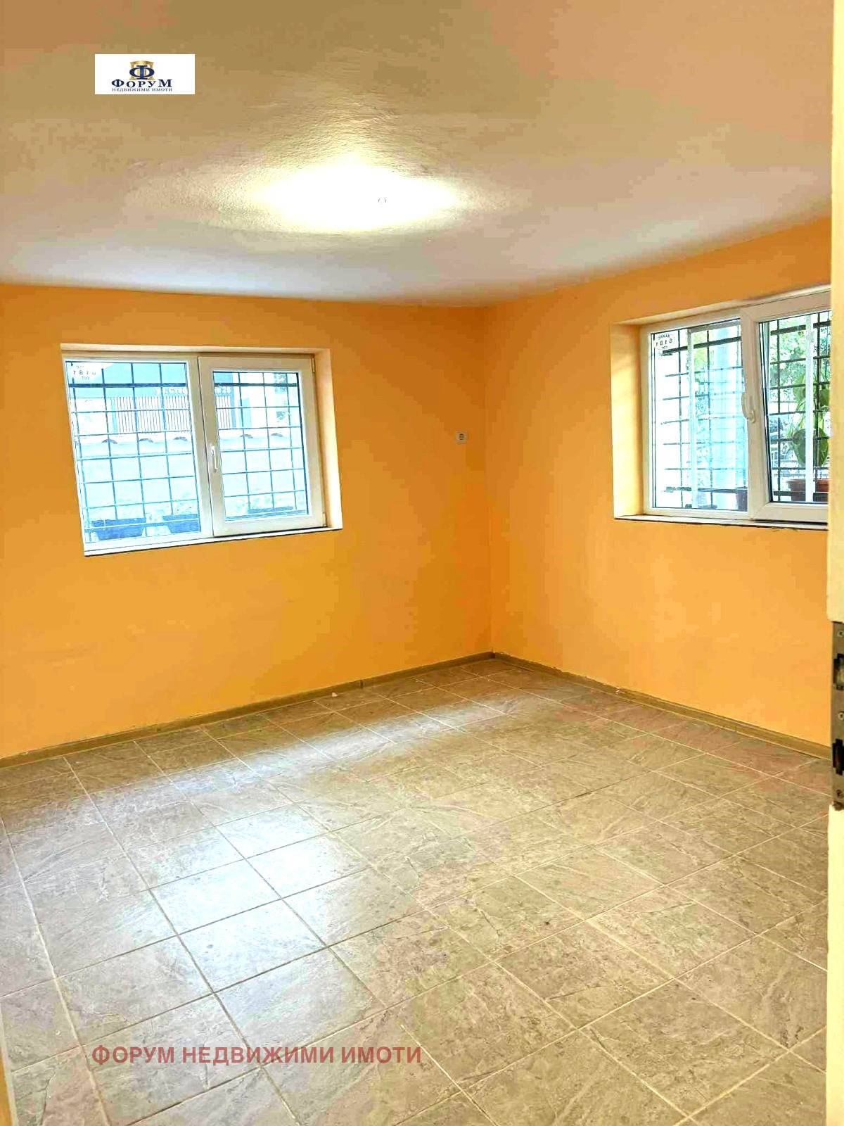 ФОРУМ недвижими имоти предлага под наем частично обзаведен партерен етаж, състоящ се от четири преходни стаи, баня с тоалетна, килер, коридор. Етажът е с обезопасени вход и прозорци, ПВЦ дограма, стени - цветен латекс, под - теракот. Помещенията са в много добро състояние, готови за ползване. Отопление - с климатици. Има СОТ, при нужда може да се активира.