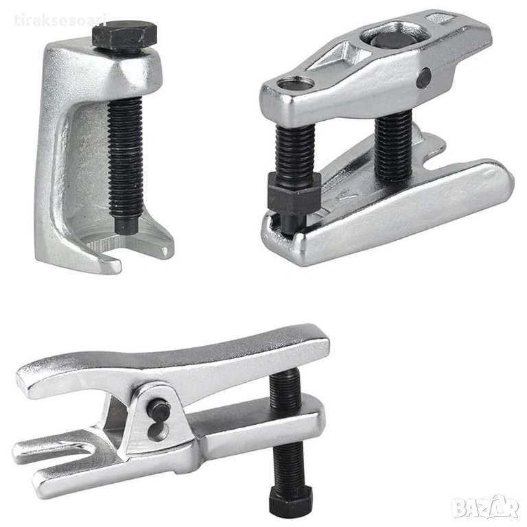 Комплект скоби за шарнири и кормилни накрайници HAWEK HW-1090, включващ 3 професионални екстрактора за бърз и безопасен демонтаж на елементи от кормилната система и окачването.