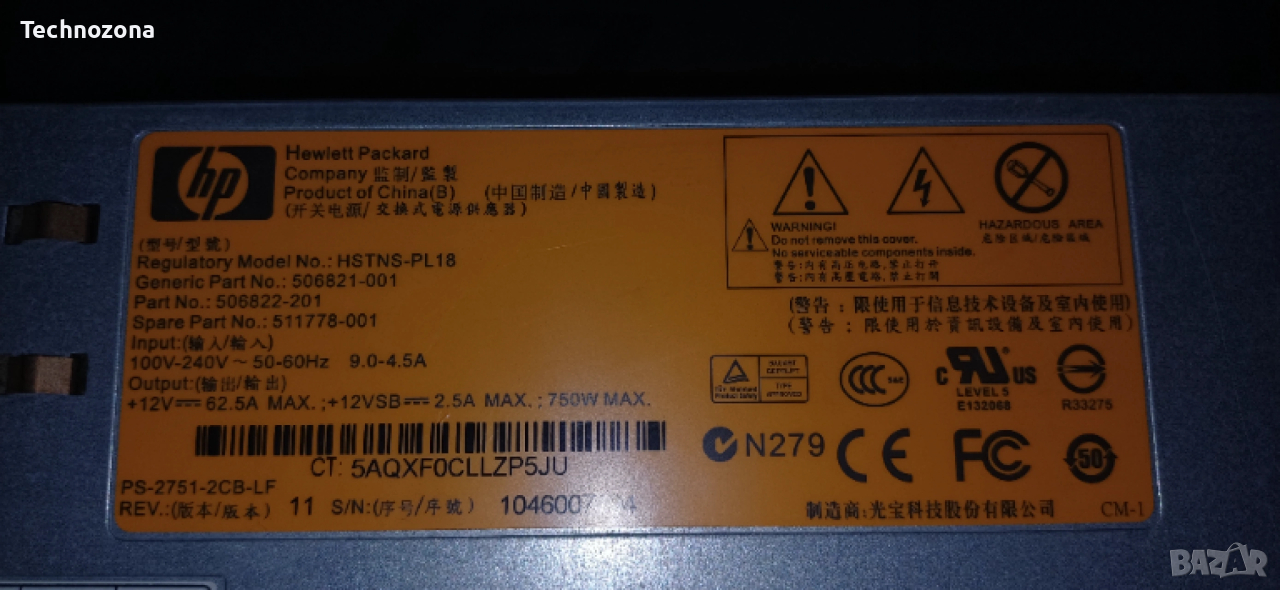 HP сървърно захранване 750 W, снимка 1 - Захранвания и кутии - 53622121 1/1