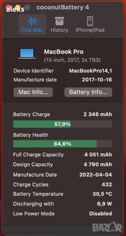 Лаптопът е в много добро външно състояние, без забележки и без повреди. Работи отлично.