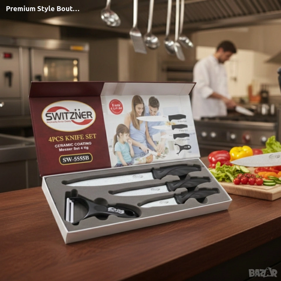 Комплект ножове Switzner от 4 части с керамично покритие и ергономични силиконови дръжки